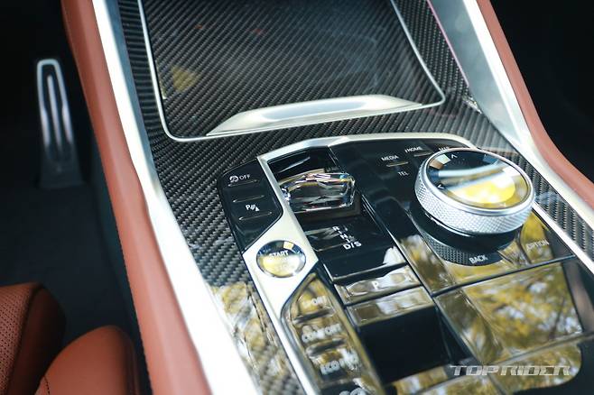 새롭게 디자인된 기어 셀렉터 레버는 크리스탈 소재로 제작됐다. 토글형 기어 셀렉터로 실내 공간이 넓어 보이는 효과를 주지만 기존 전자식 레버 특유의 '손맛'은 더 이상 느낄 수 없게 됐다. 조수석 대시보드 M LED 앰비언트 라이트 바, 파노라마 글라스 선루프가 탑재됐다.