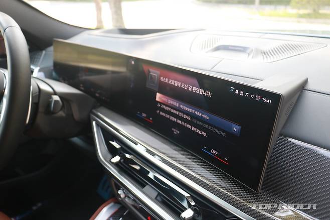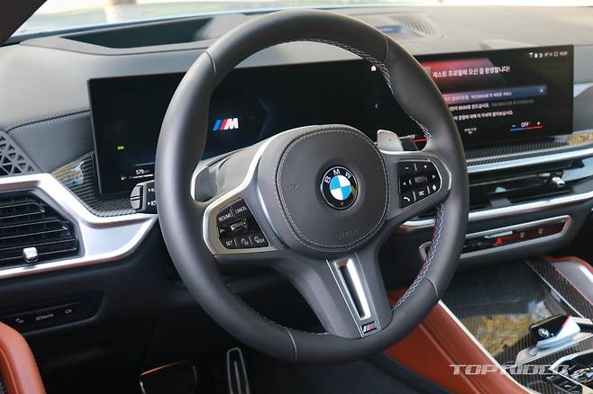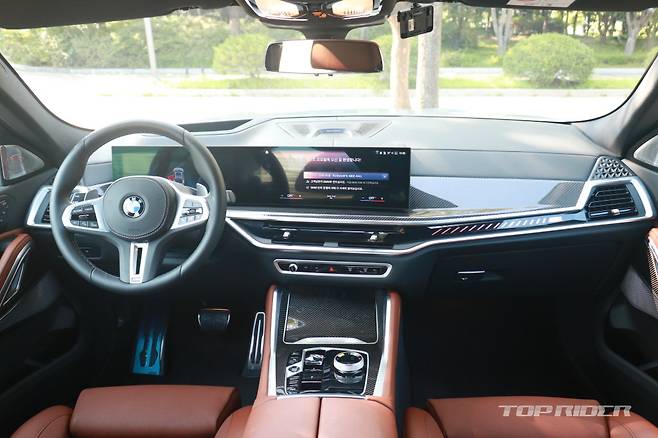 신형 X6 실내는 12.3인치 디지털 계기판과 14.9인치 터치 디스플레이가 하나로 연결된 BMW 커브드 디스플레이가 적용되면서 물리적인 버튼이 최소화됐다. 공조기와 1열 열선 및 통풍 시트 등 제어는 디스플레이로 가능하다. 단 주행모드와 같은 주요 기능은 물리 버튼이다.