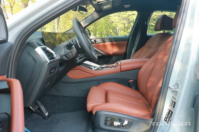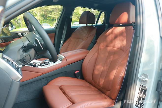 신형 X6 M60i xDrive 시트 포지션은 낮은 편에 속한다. 스티어링 휠 상하 조절 폭이 크지 않아 최적의 스트 포지션을 맞추기가 조금 어렵다. 시트는 착좌감이 좋고 소재가 부드럽다. 1열 시트는 마사지 기능이 추가됐다. 도어 트림 마사지 버튼으로 간편하게 조작할 수 있다.