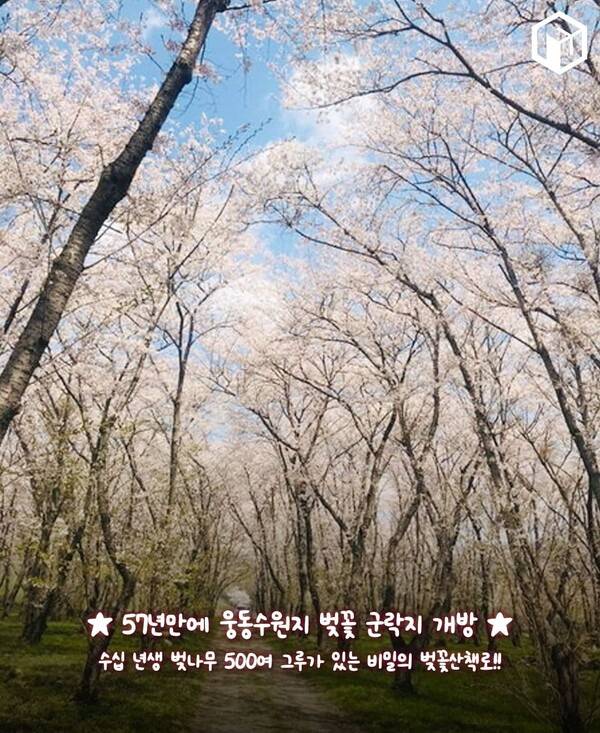 2025 진해 군항제 개최일에 맞춰 57년간 일반에 개방되지 않던 웅동수원지 벚꽃 군락지가 개방될 예정입니다. 웅동수원지는 수십년생 벚나무 500여 그루가 있어 환상적인 벚꽃 산책을 즐길 수 있는 곳인데요.