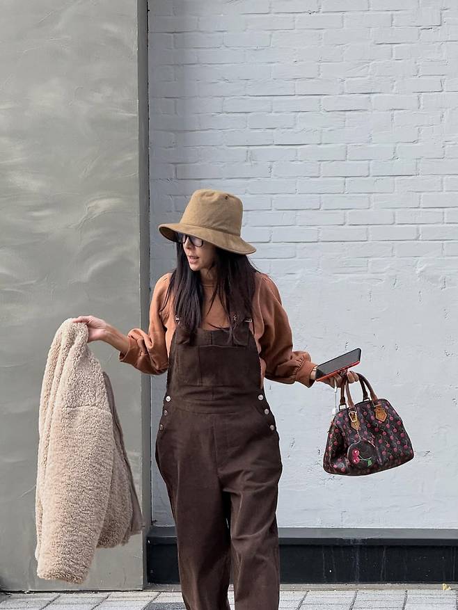 그녀가 최근 공개한 사진은 그야말로 힙스터 패션의 정석입니다. 그녀는 넉넉한 핏의 브라운 멜빵바지(오버롤)에 포근한 뽀글이 퍼 재킷을 매치했습니다. 62세의 나이에 20대도 소화하기 힘든 아이템을 완벽하게 소화한 모습입니다. 여기에 버킷햇과 클래식한 루이비통 가방을 믹스매치해 '황신혜표' 스타일을 완성했습니다.