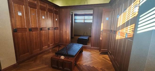 라커룸은 약간 어두운 색상으로 고급 져 보입니다. 샤워와 탕 시설은 깨끗하지만 약간 작은 편입니다.