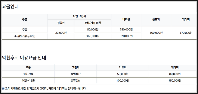 - 코스: 더스타휴 골프&리조트 - https://www.thestarhue.com/ - 날짜: 2024년 11월 18일 (월) - 티 박스: 화이트 - 캐디/카트: 15만원 / 10만원 - 그린피: 아래 참조