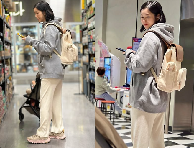최근 나혜미는 그레이 맨투맨과 크림색 팬츠로 깔끔하고 편안한 룩을 연출보여줬습니다. 그녀는 넉넉한 사이즈의 베이지 백팩을 매치해 편안한 느낌을 더하며, 신발은 운동화를 착용해 실용성을 강조했죠. 아이를 키우는 엄마의 모습이 드러난 룩이었습니다.