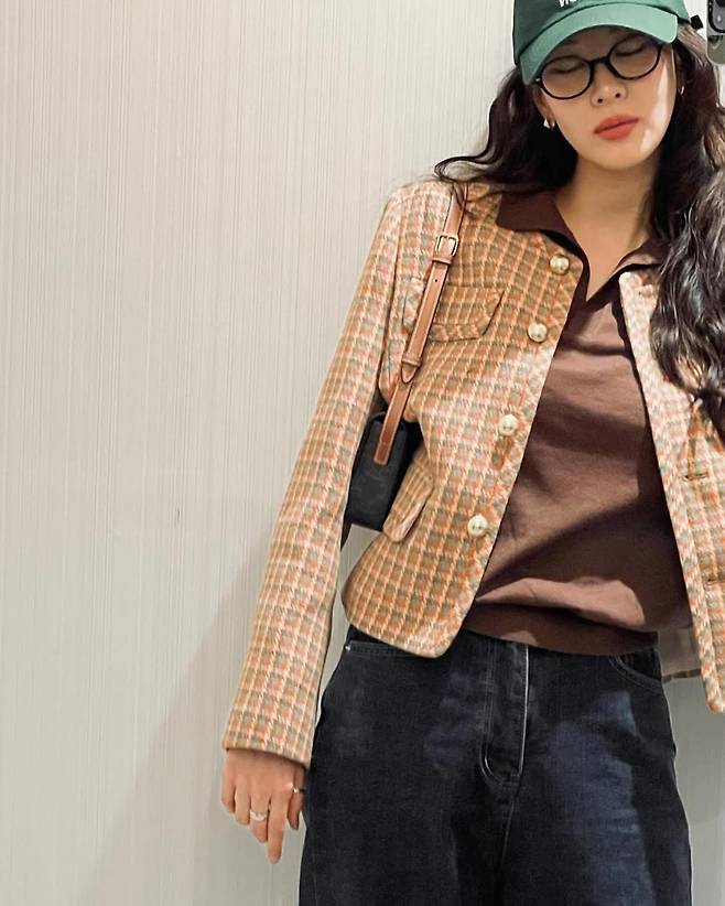 허윤진은 클래식한 스타일을 유지하면서도 감각적인 변주를 가미했다. 딥그린 컬러의 빈티지 캡을 활용해 차분한 무드를 연출하면서도, 패턴이 들어간 체크 셔츠와 루즈한 블랙 팬츠를 매치해 빈티지한 감성을 더했다. 특히 전체적인 스타일링이 절제된 듯하면서도 개성을 강조한 점이 돋보인다.