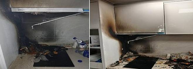 화재 원인 조사에 착수한 소방 당국은 발화 지점으로 주변이 까맣게 탄 전기레인지를 지목했다.