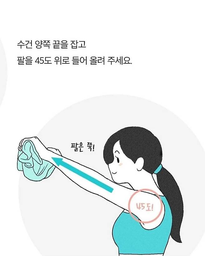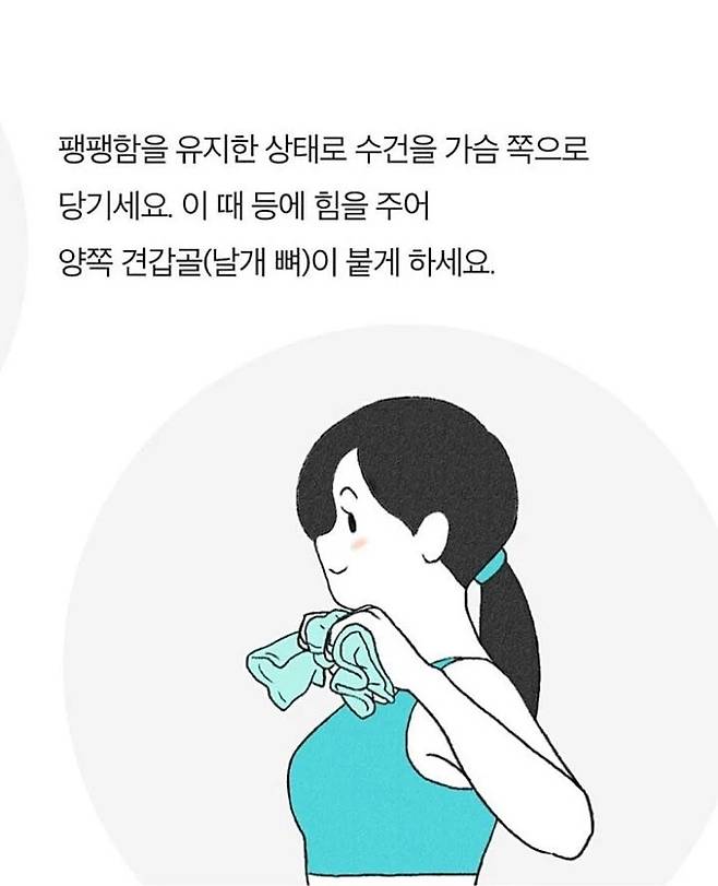 어깨를 뒤로 크게 돌리며 등뼈를 쭉 펴주세요등 뒤에 날개뼈를 ‘모은다’는 느낌!15회씩 2세트