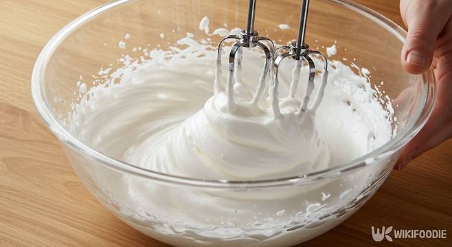 - 머랭은 기포 상태에 따라 질감이 완전히 달라진다. 중간중간 뿔 상태를 확인하면서 휘핑한다.