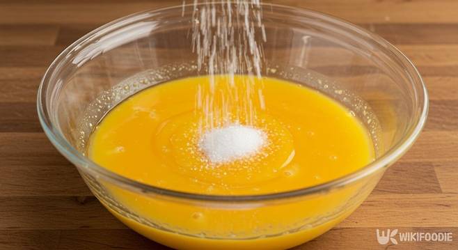 노른자 반죽은 노른자 4개, 감미료 10g, 소금 1g, 바닐라 익스트랙 3g, 꿀 또는 알룰로스 20g, 우유 60g을 순서대로 넣어 만든다. 재료가 들어갈 때마다 잘 섞어줘야 전체적으로 질감이 부드럽게 이어진다.