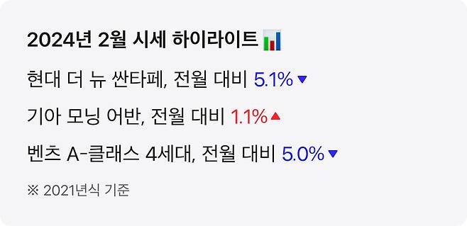 이럴 때면 당장이라도 내 차를 마련하고 싶은 마음이 굴뚝같을 텐데요. 2월을 활용해 미뤄왔던 중고차 구매를 계획해 볼 생각이라면, 오늘 중고차 시세 정리를 참고해 보세요.