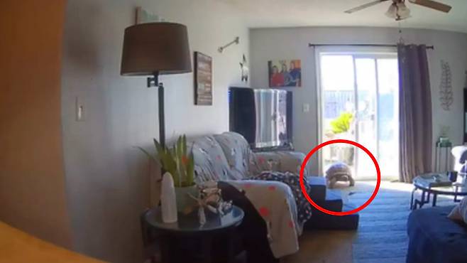 집주인 로라는 미닫이문 수리를 맡긴 인부들이 “이상한 걸 봤다”고 하자, 집 안의 보안 카메라영상을 확인했다. 영상 속엔 인부 한 명이 문 근처에서 갑자기 멈춰 서고, 천천히 다가오는 ‘돌덩이 같은 것’을 바라보는 장면이 담겨 있었다. 그런데 그것은 돌이 아니라, 그녀의 반려거북 탱키였다.