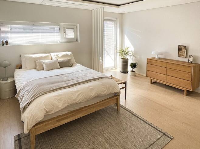 정남향의 창으로 하루 종일 포근한 햇살이 들어오는 부부의 따뜻한 휴식공간입니다.
