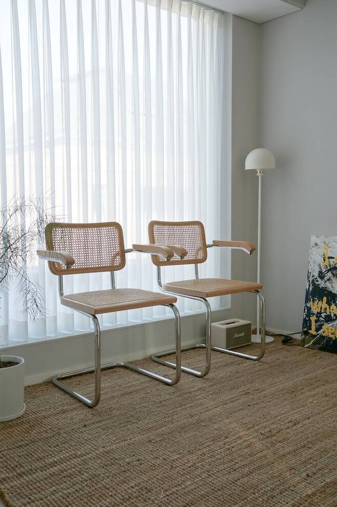 아내가 제작한 체어와 달 항아리.