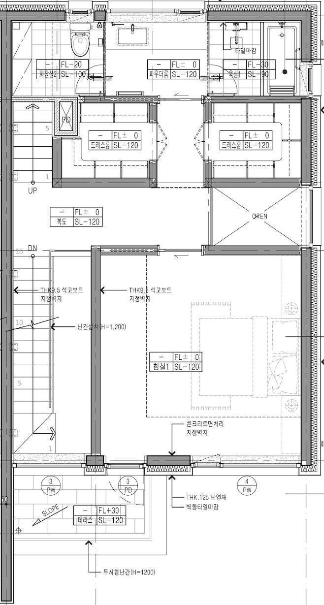 2층은 오롯이 부부만을 위한 공간으로 침실과 테라스, 드레스룸과 욕실이 있습니다.