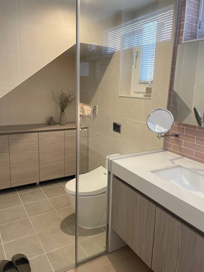 이 집이 마음에 들었던 부분 중 하나가 바로 층별로 화장실이 있다는 점입니다. 화장실을 갈 때 층간 이동을 하지 않아도 되고, 손님의 방문에도 가족의 사적인 생활공간이 보호된다는 점이 좋았습니다.