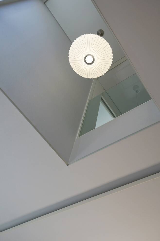 현관에서 바로 2층으로 진입할 수 있는 계단 주변 공간의 층고가 높아 거실 전체에 개방감을 줍니다.