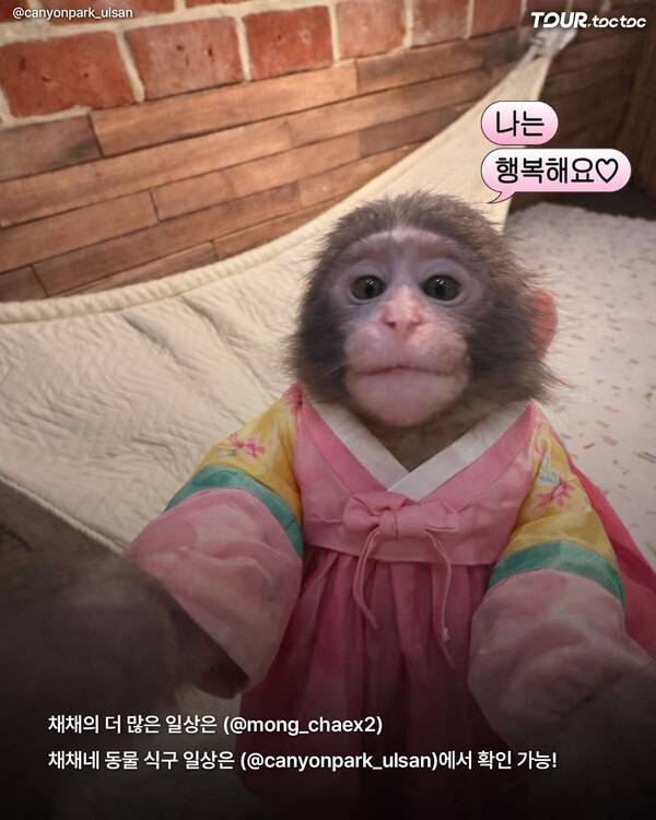 채채는 2025년 5월 29일에 태어난 아기 원숭이입니다. 현재는 울산 중구에 위치한 캐니언파크 울산점에서 생활하고 있습니다.