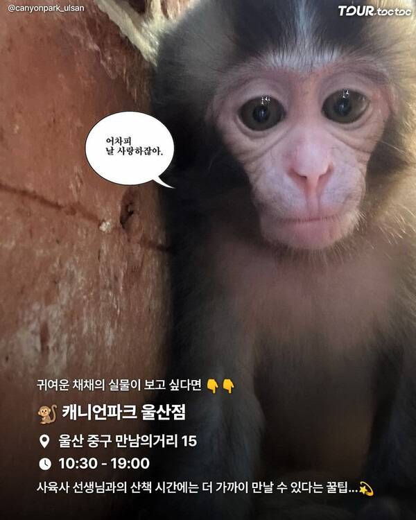 건강하게 성장하며 활동량도 늘어난 만큼, 사육사와 함께하는 산책 시간에는 더욱 생기 있는 모습을 가까이에서 볼 수 있습니다. 울산 실내 동물 체험 공간을 찾고 있다면 캐니언파크 울산점에서 채채의 실물을 직접 만나볼 수 있습니다.