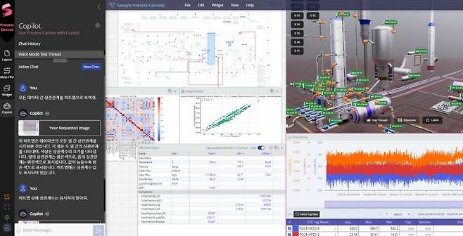 <프로세스메타버스 솔루션 화면 - 공정캔버스 (Process Canvas) 와 생성AI 코파일럿 (GenAI Copilot) 사용>