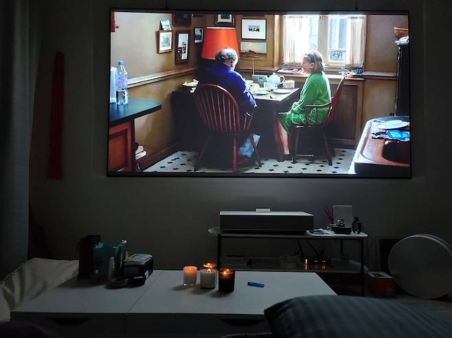 초단초점 프로젝터는 CLR스크린과 함께 사용해야 가장 선명하게 즐길 수 있습니다. 스크린이 없을 경우 어두운 환경에서는 괜찮을지 몰라도, 밝은 환경에서는 많이 아쉽습니다.