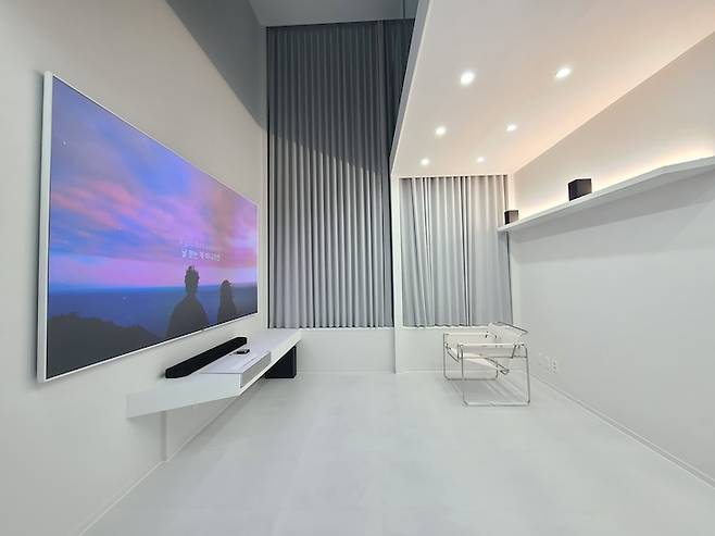 홈시네마는 지인들이 방문하면 가장 탐내는 부분인데다 DM으로 가장 많은 문의가 들어올 정도로 제가 한 인테리어 중 만족도가 가장 높은 공간이에요.