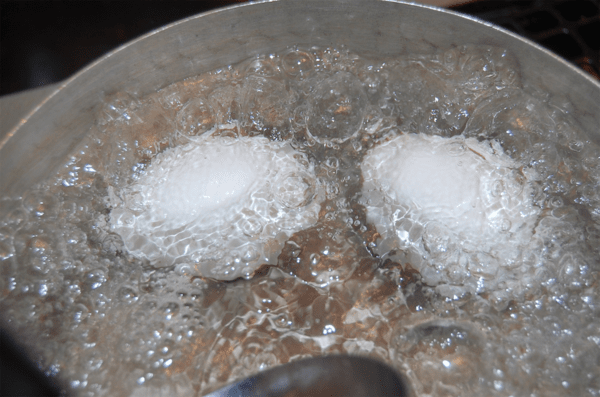 반드시 가열: 살모넬라 예방, 8분 이상 삶기.