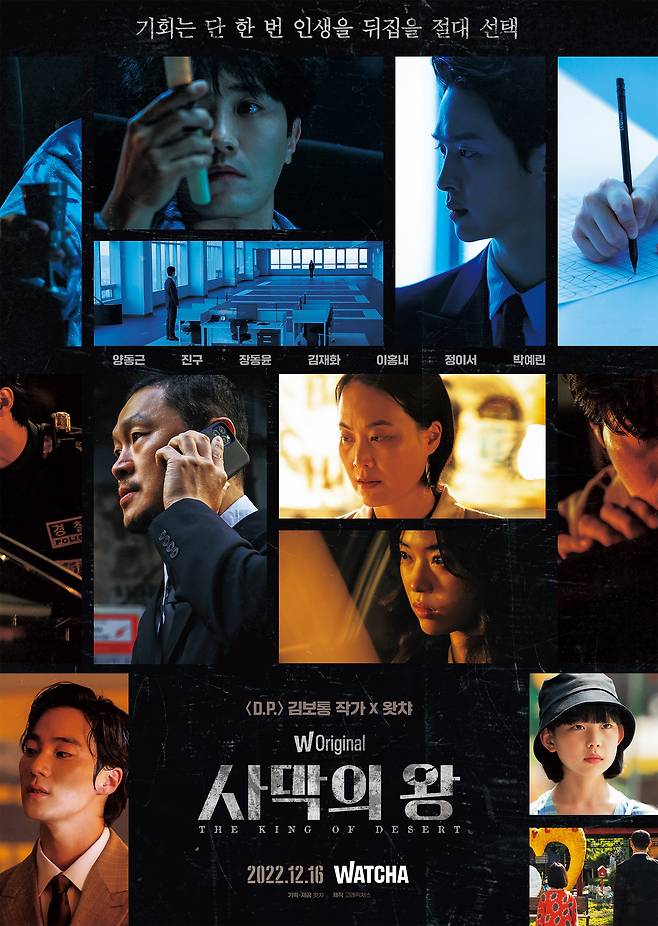 6부작 왓챠 오리지널 시리즈 [사막의 왕]은 한 회당 30-40분 내외로 짧지만 한편의 독립된 영화를 보는 듯 대사, 표정, 미장센이 압권이다. 심상치 않은 상상력은 [D.P] 작가 김보통의 머리에서 시작되었다. 웹툰 작가, 수필가, 이번엔 시나리오 작가와 드라마 연출까지 섭렵한 김보통의 무한 확장을 경험하는 계기가 될 것이다.