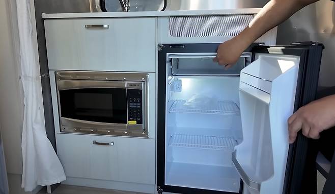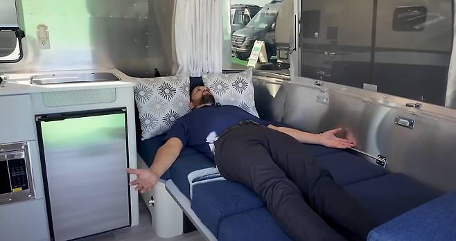 밤비 16RB의 내부 벽체는 알루미늄 패널을 노출한 채 마감해 에어스트림 특유의 전통적 감각을 살렸다. 난방, 냉방, 오디오 등 현대적 편의 장치는 갖추면서도, 여행자가 가장 많이 이용하게 될 공간은 여전히 기본 구조와 효율적 설계로 구성됐다. 2인 여행 시에는 쾌적하게 사용할 수 있으며, 4인 가족 여행 시에는 화장실 이용과 공간 관리를 계획적으로 해야 한다.
