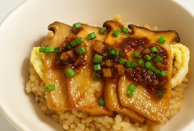 쫀득한 식감과 은은한 단맛이 매력인 새송이버섯을 듬뿍 넣은 새송이덮밥을 소개합니다.