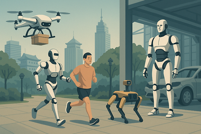 중국이 추진 중인 'Embodied AI' 기술은 단순한 기술 혁신을 넘어, 일상생활의 구조 자체를 바꾸고 있다. 심천에서 드론이 음식을 배달하고, 베이징 공원에서는 감시용 로봇이 순찰을 돈다. 자동차 공장에는 인간형 로봇이 서 있고, 최근에는 이들이 인간과 함께 하프마라톤에 출전해 완주까지 해냈다. 과연 이 모든 흐름은 우리가 기대하던 미래인가, 아니면 통제를 기반으로 한 기술 유토피아인가?