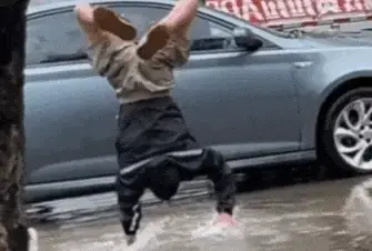 힘겹게 차 위로 올라갔는데, 놀랍게도 고개를 들어보니 정말 절망적인 상황이었습니다! 차가 물웅덩이 반대편 벽에 너무 가까이 붙어 있어서 내릴 여지가 전혀 없었습니다.