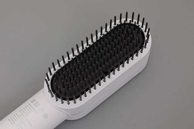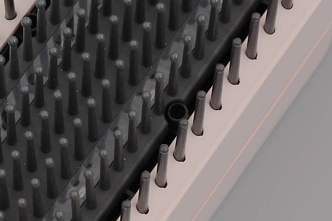 브러시 빗살 가장자리 부분을 보면 양쪽에 하나씩 총 두 개의 구멍이 뚫려 있는 것을 확인할 수 있는데, 이곳을 통해 2억 개의 양이온과 음이온이 배출되어서 정전기를 방지해주고 두피의 유수분 밸런스를 조절해준다.