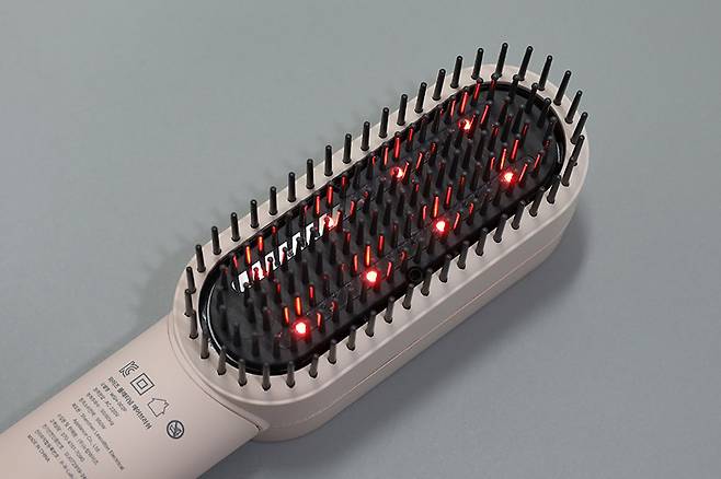 손잡이 부분에 있는 모드 스위치를 올려서 전원을 켜면 브러시 부분에 총 여덟 개의 붉은색 LED가 켜지는데, 여기에서는 630㎚ 파장의 적색광선이 나와 두피 진정과 피부 속 에너지 충전, 두피 탄력 및 보습에 도움을 준다. 또한 적색광선 램프 사이에는 여섯 개의 LED에서 850㎚ 파장 근적외선도 나와 두피 피하 조직까지 도달해 혈액순환을 촉진하고 두피 세포 재생에도 도움이 된다.