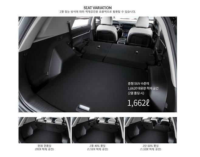 전체 언폴딩 시 703리터, 2열 폴딩시 1662리터의 공간을