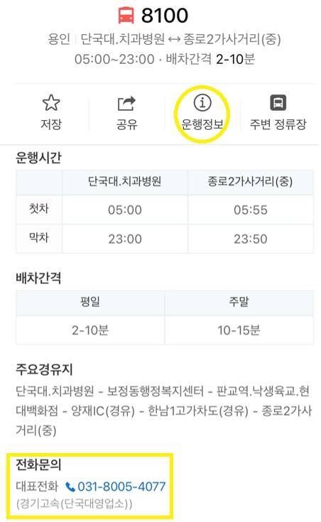 - 버스의 경우 버스 노선별 차고지에 연락