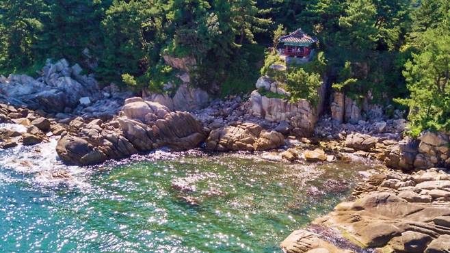 소나무 군락과 깎아지른 듯한 기암절벽, 그 위에 앉은 단아한 팔작지붕 정자 하나가 모든 풍경을 만든다.