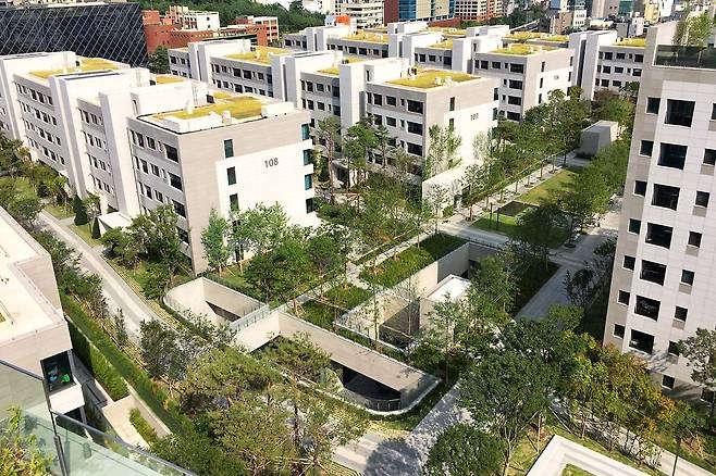 ํ๋จ๋ **์ ์๋น๋ฆฌ์ง(UN Village)**์ ๊ณ ๊ธ ์ฃผํ์์ ์ด๊ณ ์๋ ๊ทธ์ ์ง์