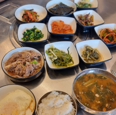 ▶ 특징: 반찬이 10가지 이상 제공되는 푸짐한 구성