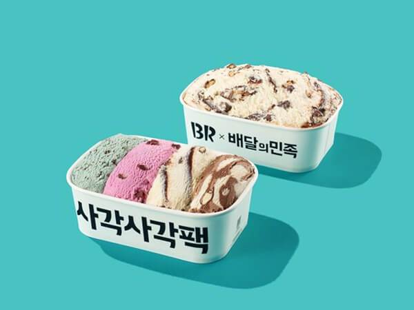 SPC 배스킨바린스는 배달의민족과 협업해 배달의민족 주문 전용 핸드팩 사이즈인 ‘사각사각팩’을 출시했다. 신제품은 오직 배달의민족에서 배스킨라빈스 제품을 배달 또는 픽업 주문할 경우에만 즐길 수 있는 핸드팩 사이즈다. 파인트와 쿼터의 사이즈 중간 용량(450g)으로 선보인다. 서로 다른 아이스크림 맛들을 가지런히 영역을 구분해 제공하는 일명 ‘세로 담기’의 형태로 만나볼 수 있는 점도 특징이다. 가격은 14,000원이다.