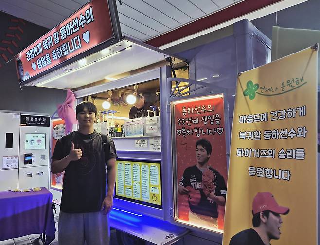 황동하의 생일을 축하하고, 건강하게 복귀하기를 바라는 마음에 팬이 보내준 커피차였다.