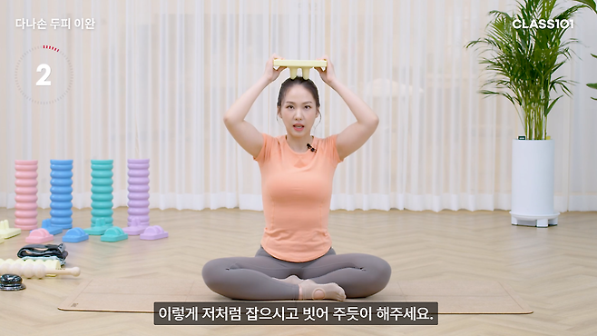 먼저 다나손을 준비해 주세요. 다나손으로 두피를 근막이완합니다. 빗어 주듯이 두피 아래쪽에 있는 전두근과 후두근을 이어주는 무상건막을 풀어주세요. 이 동작은 목, 어깨, 얼굴 그리고 뇌혈관의 순환에 좋은 동작입니다.