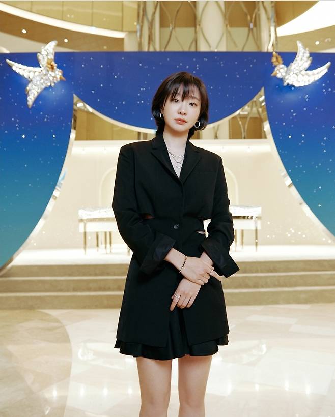 여기에 김다미는 실버 액세서리로 포인트를 더해 깔끔하고 고급스러운 느낌을 살렸습니다.