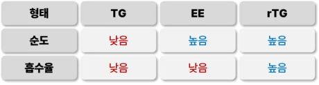 흡수율과 순도 모든 부분에서 TG형태는 좋지 않기 때문에 추천하지도 않고, 실제로 이제는 시장에서 찾기가 쉽지 않습니다. 선택지는 EE형과 rTG형인데요.