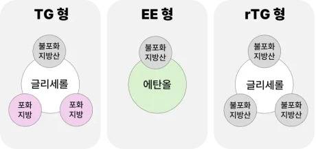 EE형은 TG형에서 불포화 지방산(EPA, DHA)만 분리하여 순도를 높인 형태입니다.하지만 분리 과정에서 체내 흡수를 돕는 글리세롤이 제거되고, 대신 불포화 지방산이 에탄올(알코올)과 결합하게 됩니다. 글리세롤이 제거되면서, EE형은 체내에서 다시 TG형으로 변환되는 과정이 필요해 흡수율이 낮아질 수 있는 단점이 있습니다. 또한, 이 제조 공정으로 인해 제품에 소량의 에탄올이 남게 되는 것도 단점입니다.