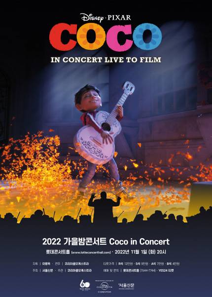 서울신문이 주최하고 코리아쿱오케스트라가 주관하는 ‘코코 인 콘서트’가 11월 1일 서울 송파구 롯데콘서트홀에서 열린다. 한국과 멕시코 수교 60주년을 기념해 영화의 배경인 멕시코의 명절 ‘죽은 자의 날’(10월 31일~11월 2일)에 맞춰 펼쳐지는 뜻깊은 행사다. 대형 스크린을 통해 나오는 아름답고 다채로운 영상을 배경으로 코리아쿱오케스트라의 연주가 공연장을 가득 채운다.