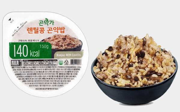 곤약가 렌틸콩 곤약밥은 슈퍼푸드 렌틸콩을 6% 첨가한 제품이다. 렌틸콩은 양질의 단백질, 비타민, 무기질, 식이섬유를 풍부하게 함유한 식품으로, 고소한 맛과 식감이 일품으로 평가된다. 이 제품은 렌틸콩과 곤약을 활용해 흰쌀밥 대비 칼로리는 56%, 탄수화물은 59%를 줄였다. 그뿐만 아니라 식이섬유는 7배가 더 많아, 풍부한 포만감을 느낄 수 있다. 3개들이 패키지의 판매가는 6,900원이다.