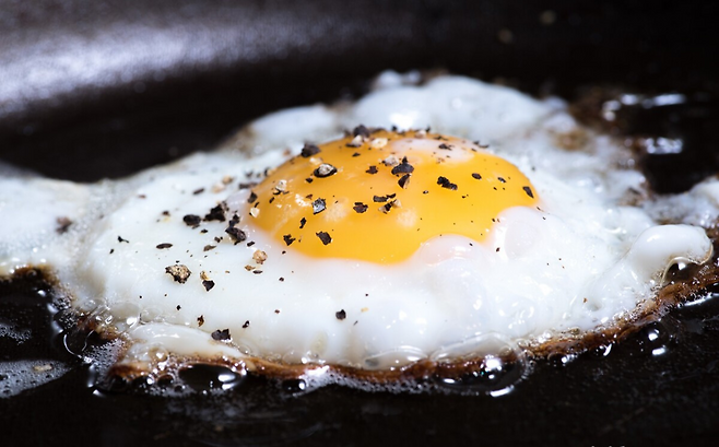 계란후라이는 가장 쉬운 요리 같지만 막상 만들면 마음대로 안 되는 대표적인 음식이다. 뒤집으려다 노른자가 터지고, 그냥 두자니 윗면 흰자가 투명하게 덜 익는다. 가장자리는 타들어가는데 가운데는 아직 물컹거린다. 이 모든 문제의 원인은 뒤집기에 있다. 뒤집지 않고도 윗면까지 완벽하게 익히는 방법이 있다. 필요한 건 물 한 숟갈과 뚜껑 하나뿐이다.