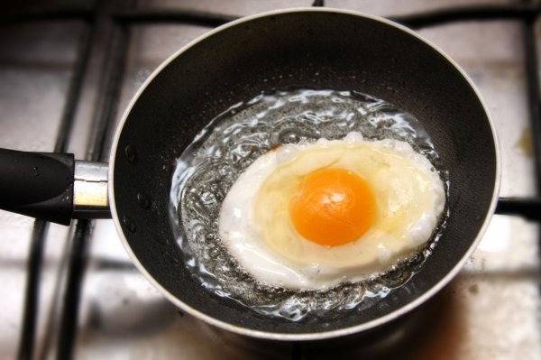 이 방법은 미국 다이너 식당에서 써니사이드업을 만들 때 널리 사용하는 조리법이기도 하다. 물 대신 분무기로 계란 위에 직접 물을 뿌린 뒤 뚜껑을 덮는 방식도 같은 원리다.