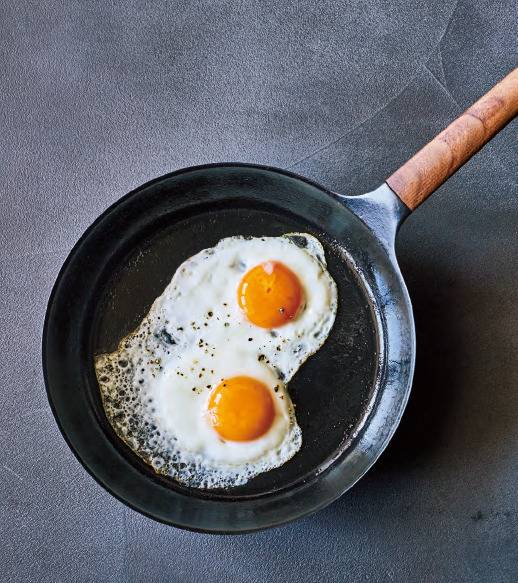 비타민 A, D, B12와 함께 뇌 건강에 필수적인 콜린도 풍부해서 아침 식사 단백질 공급원으로 매우 효율적이다. 저온에서 천천히 익히면 영양소 파괴도 최소화된다. 기름 없이 완전히 물만으로 조리하는 것도 가능한데, 코팅이 잘 된 논스틱 팬에 물 2~3큰술을 넣고 끓인 뒤 계란을 넣고 뚜껑을 덮으면 된다. 다이어트 중이라면 이 방법도 시도해볼 만하다.