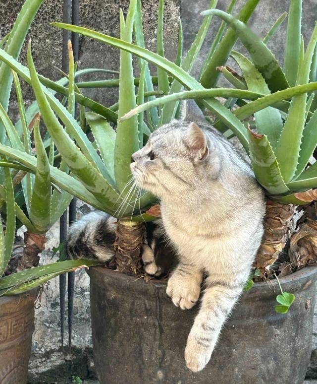 알로에 베라, 파, 심지어 가시 많은 식물조차 고양이의 '안락한 휴식처'가 된 모습도 확인되었습니다.